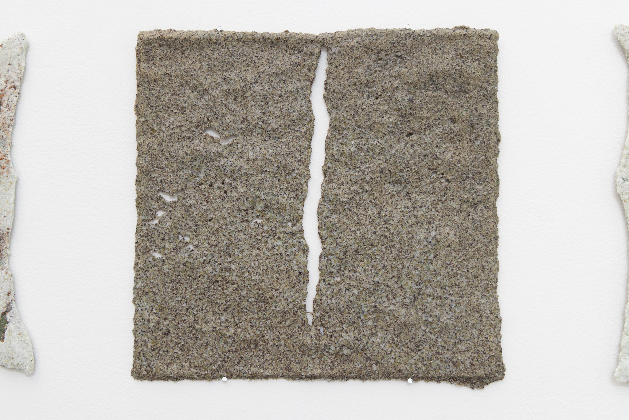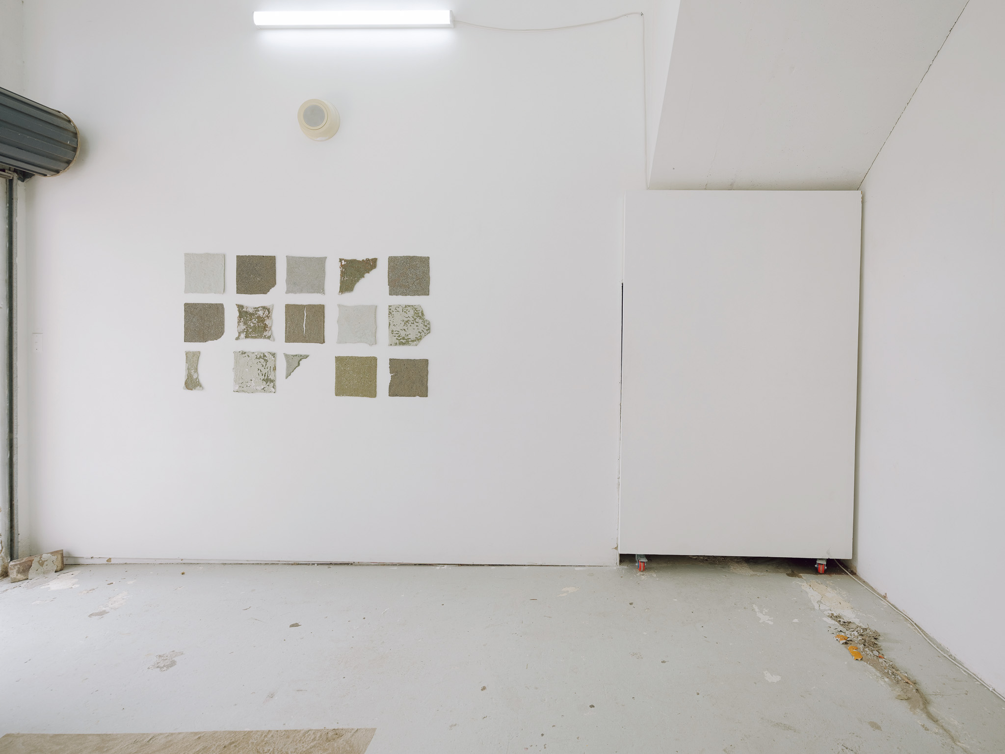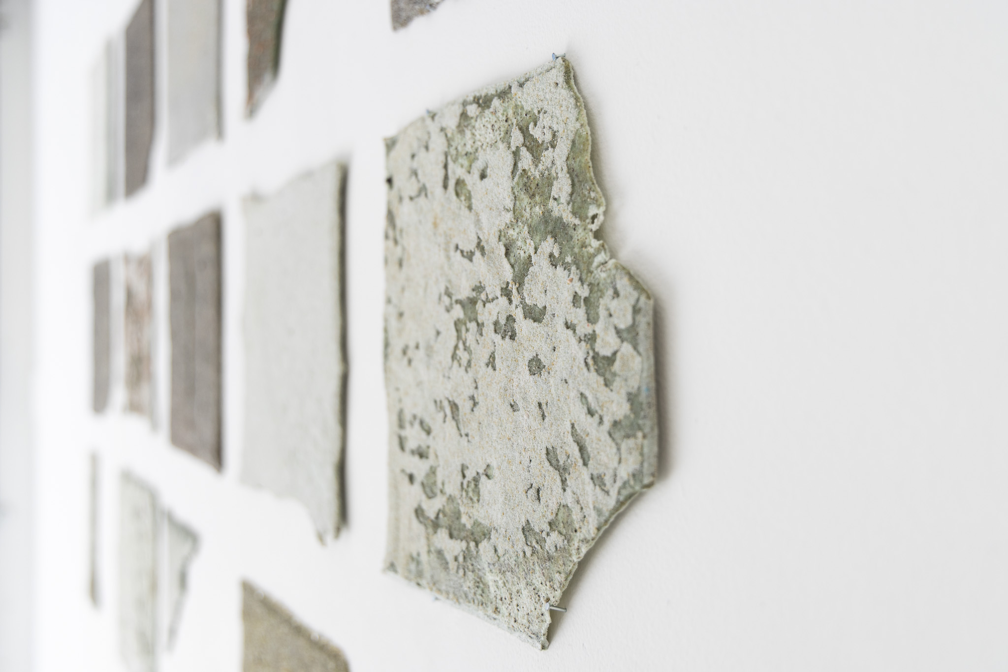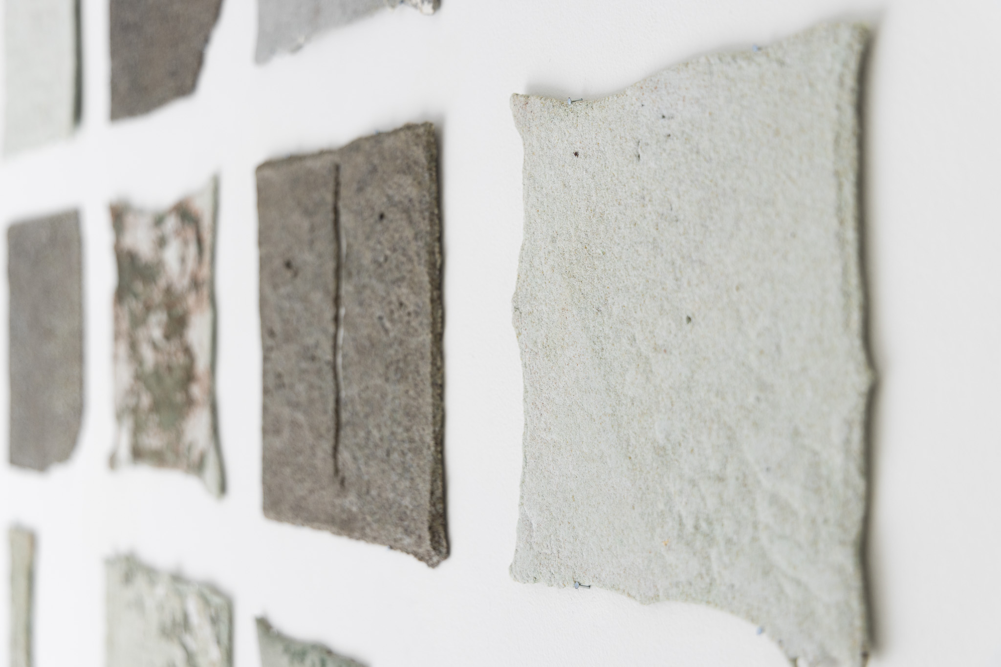 mur | mur is the outcome of a site-specific research project undertaken by sculpture and installation-based artists Emma Pinsent and Sadhbha Cockburn investigating the material resonances between their own practices and the Puzzle Gallery space. Drawn to the gridded holes of the gallery’s air vents, the artists question how the origins of walls may be traced back through acoustic, linguistic and material resonances.